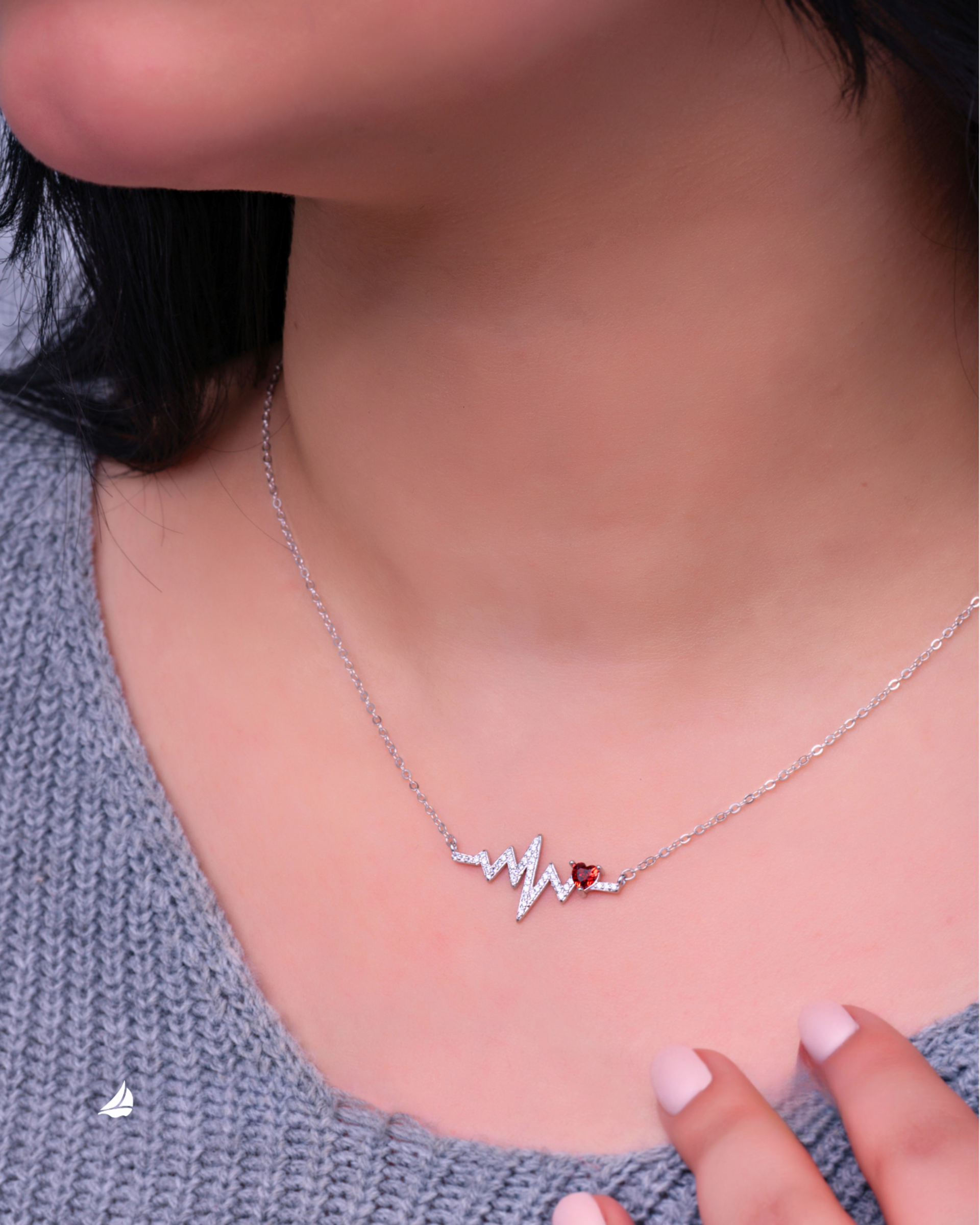 This stunning heartbeat necklace in 925 sterling silver features a sparkling rhythm line ending in a delicate red heart-shaped charm — a perfect symbol of passion, emotion, and connection.